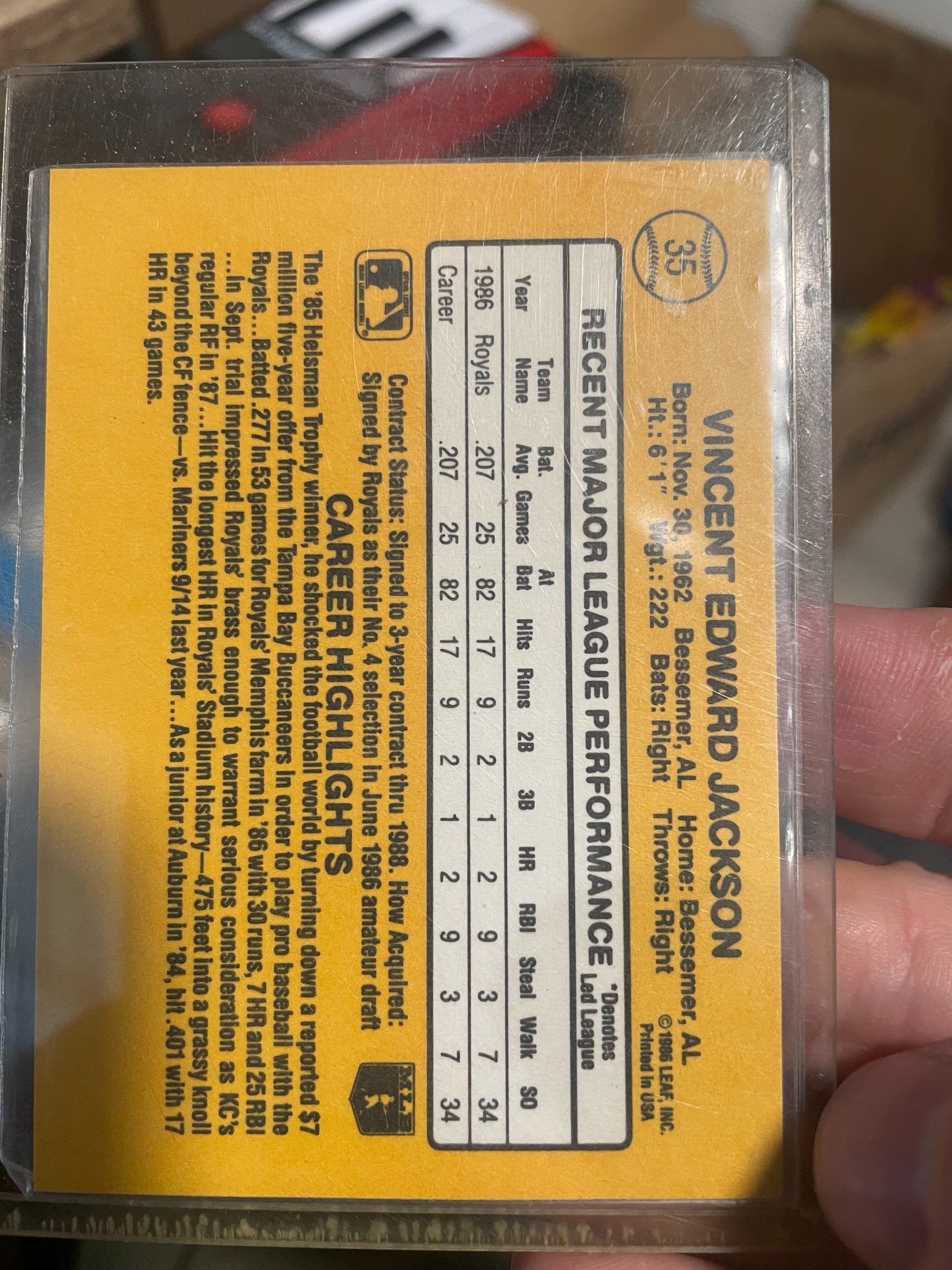 Bo JacksonRated Rookie1987 Donrussbaseball cardsports memorabilia